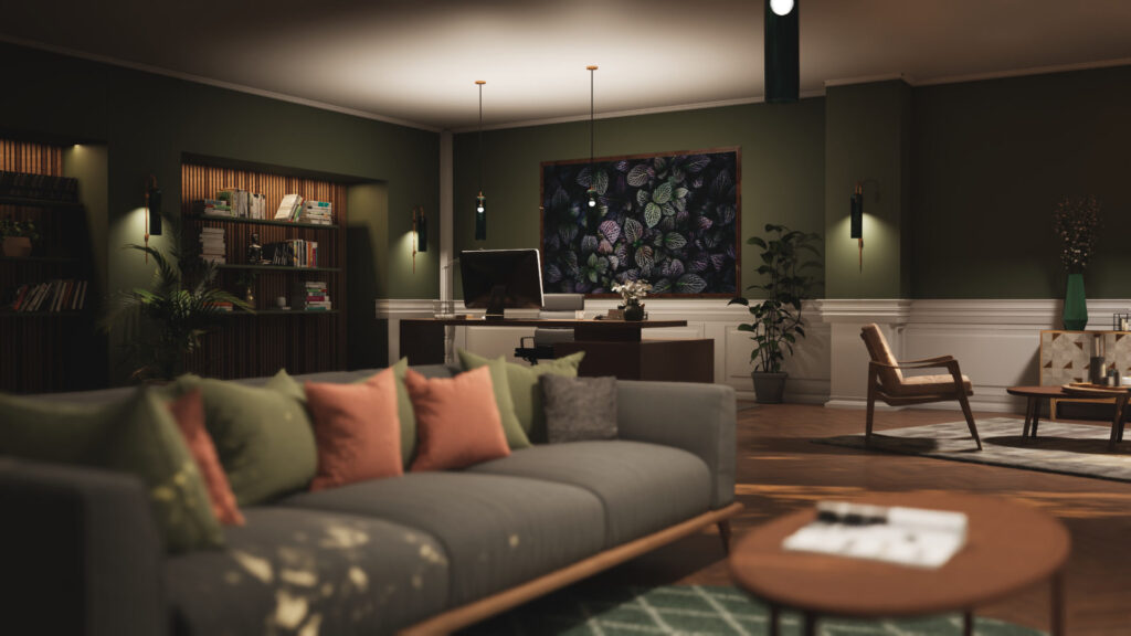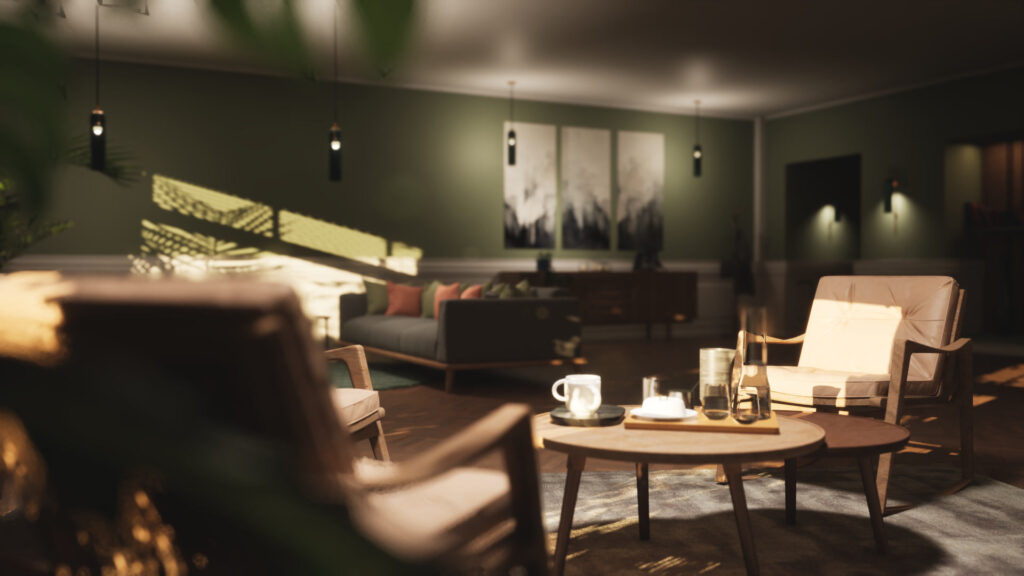The challenge was assembling the scene in a way that makes sense from different perspectives and allows the atmosphere to reveal itself.