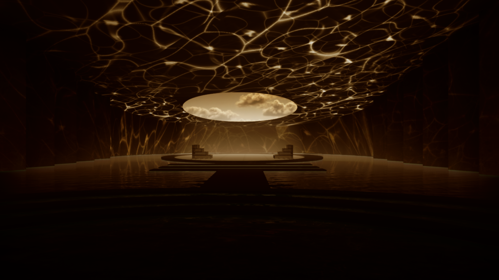 Two of these 5 worlds were designed by me. First one is the “frozen world” where she beautifully performs the Norcturne No.9 in E Minor , taking us on a dream of frozen memories and reflection of feelings.