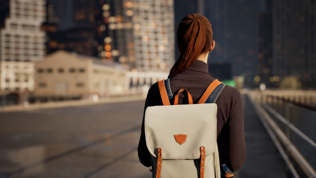 Thomann: A bridge that takes the violinist into a dark and gloomy large city with tall skyscrapers. She stops at a perfect spot where she starts playing, while she is watched by some viewers. The atmosphere starts to change, and she elevates high above the clouds.