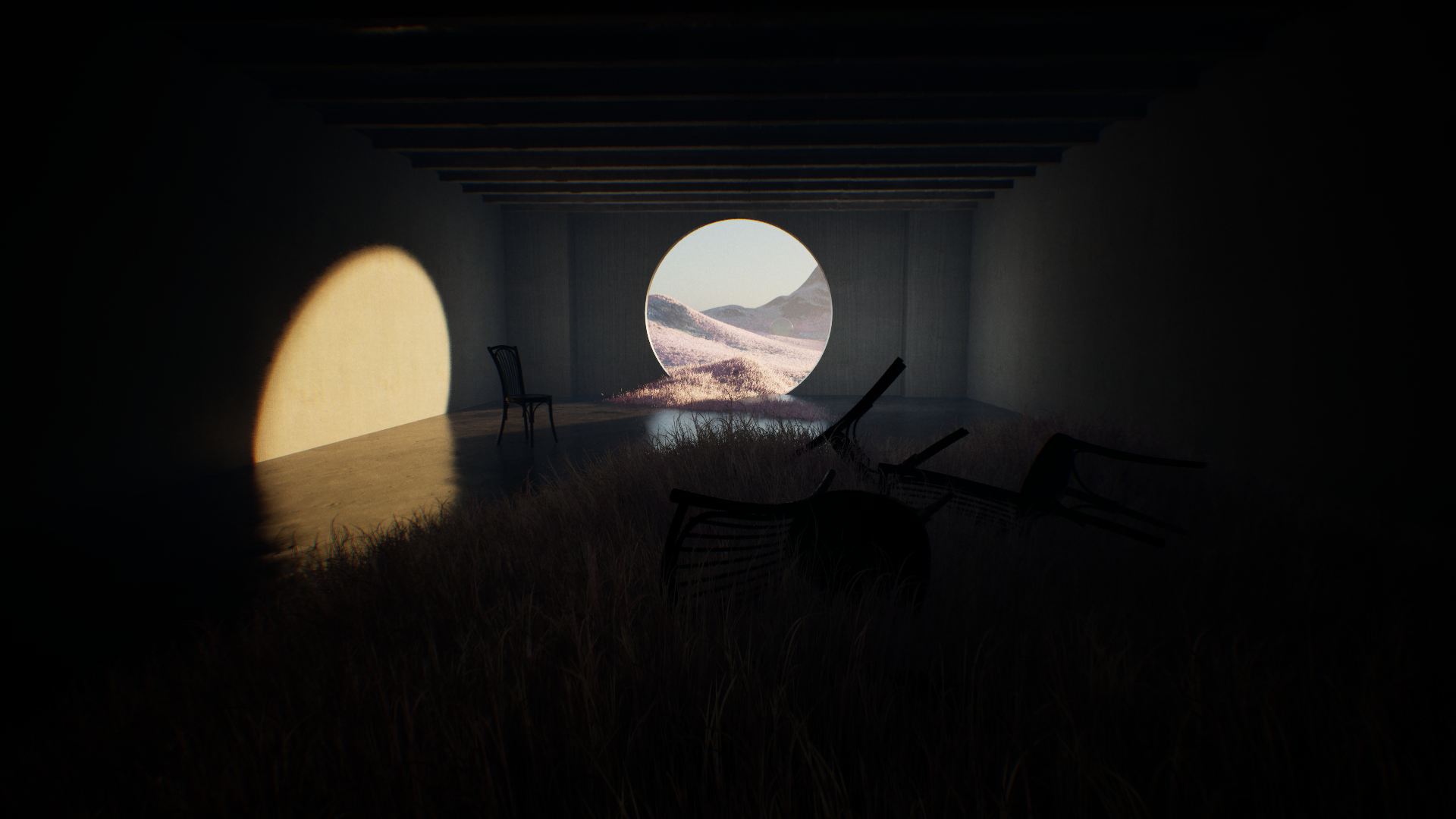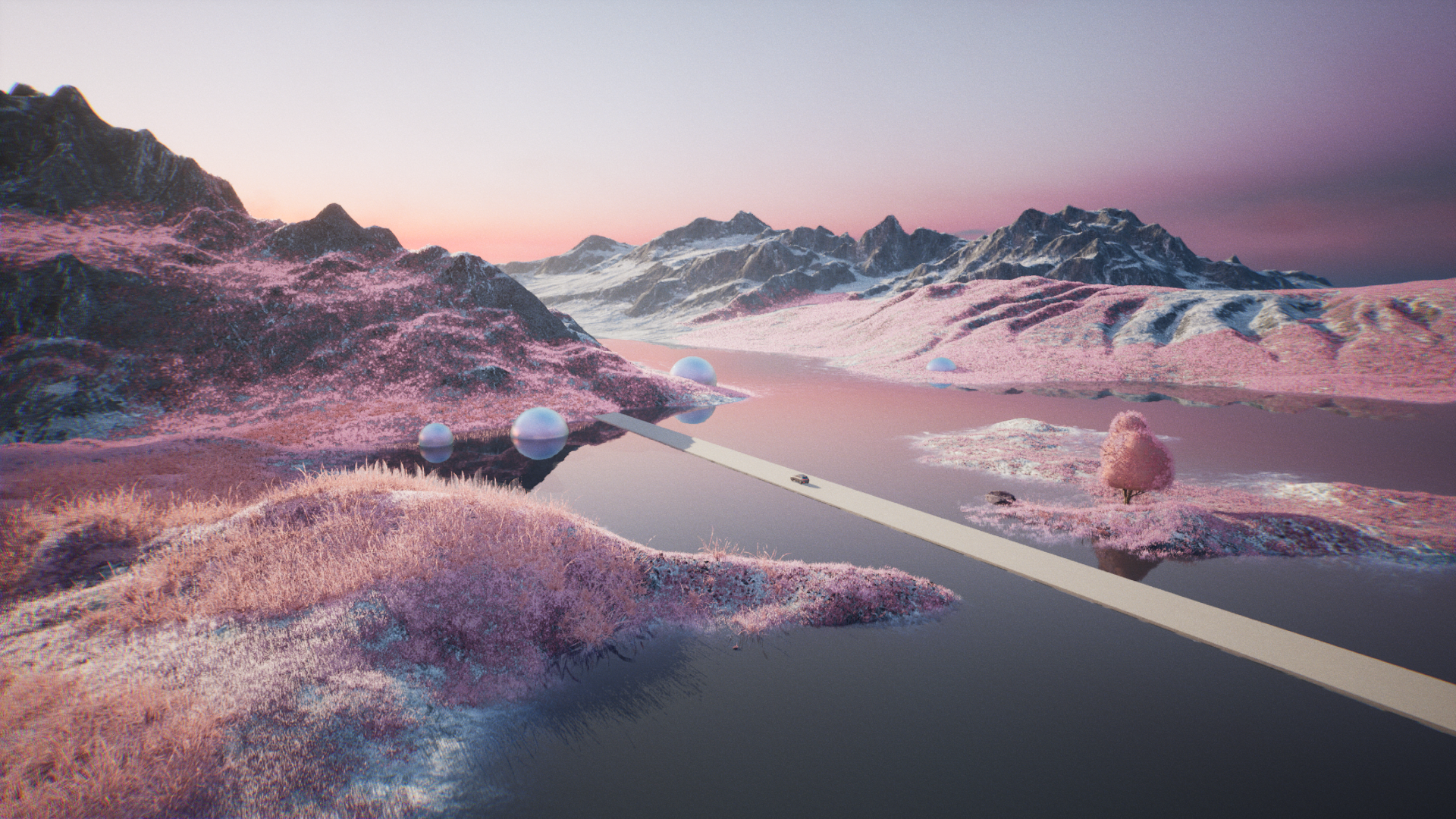 A visual design research in Unreal Engine for a real-time environment with a surreal atmosphere.