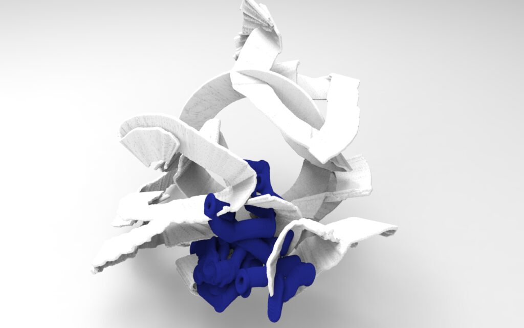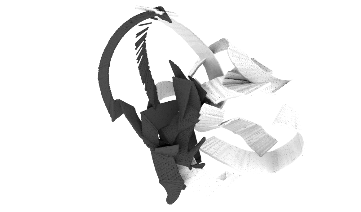 Enacting the whole geometries for the robot, him, redrawing them, and composing the geometries as Hejduk has done in his design process, and after that: composing the actual object with its translated version also in a half-half manner.