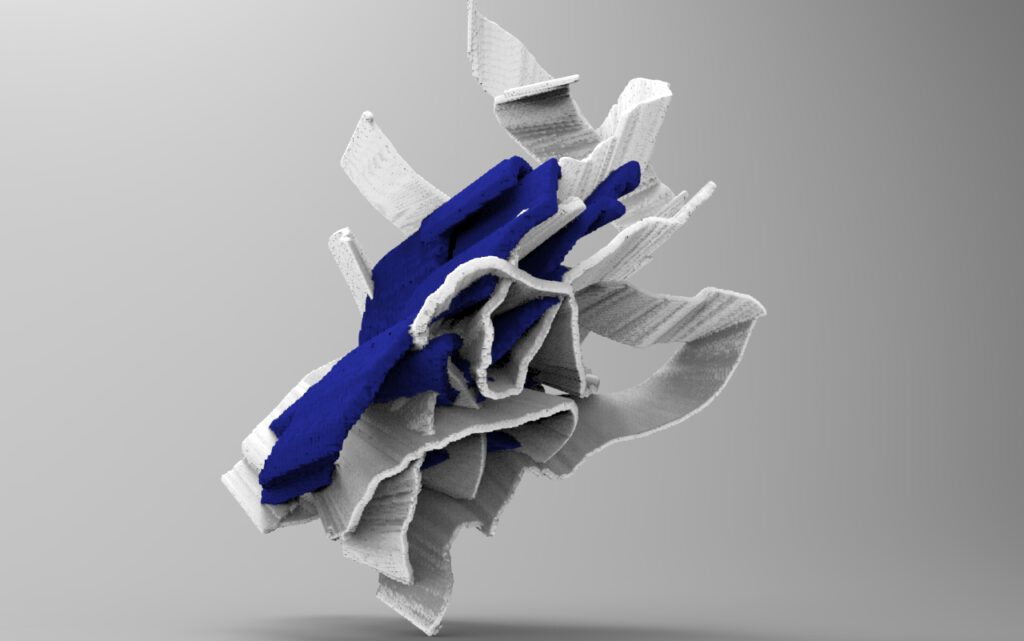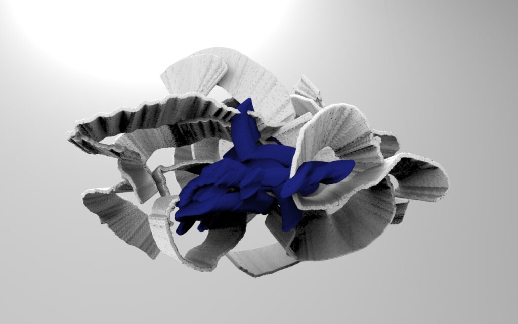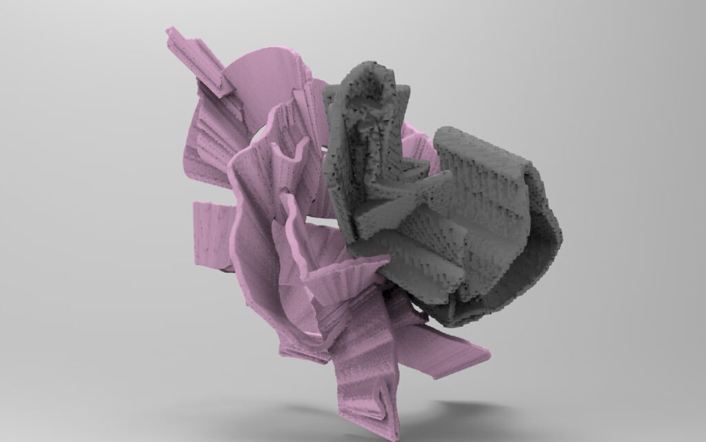 Later the question of –CO-creation led me to create a composition from the original obj and its translated version using the second straight Aux as a meeting point between two entities.