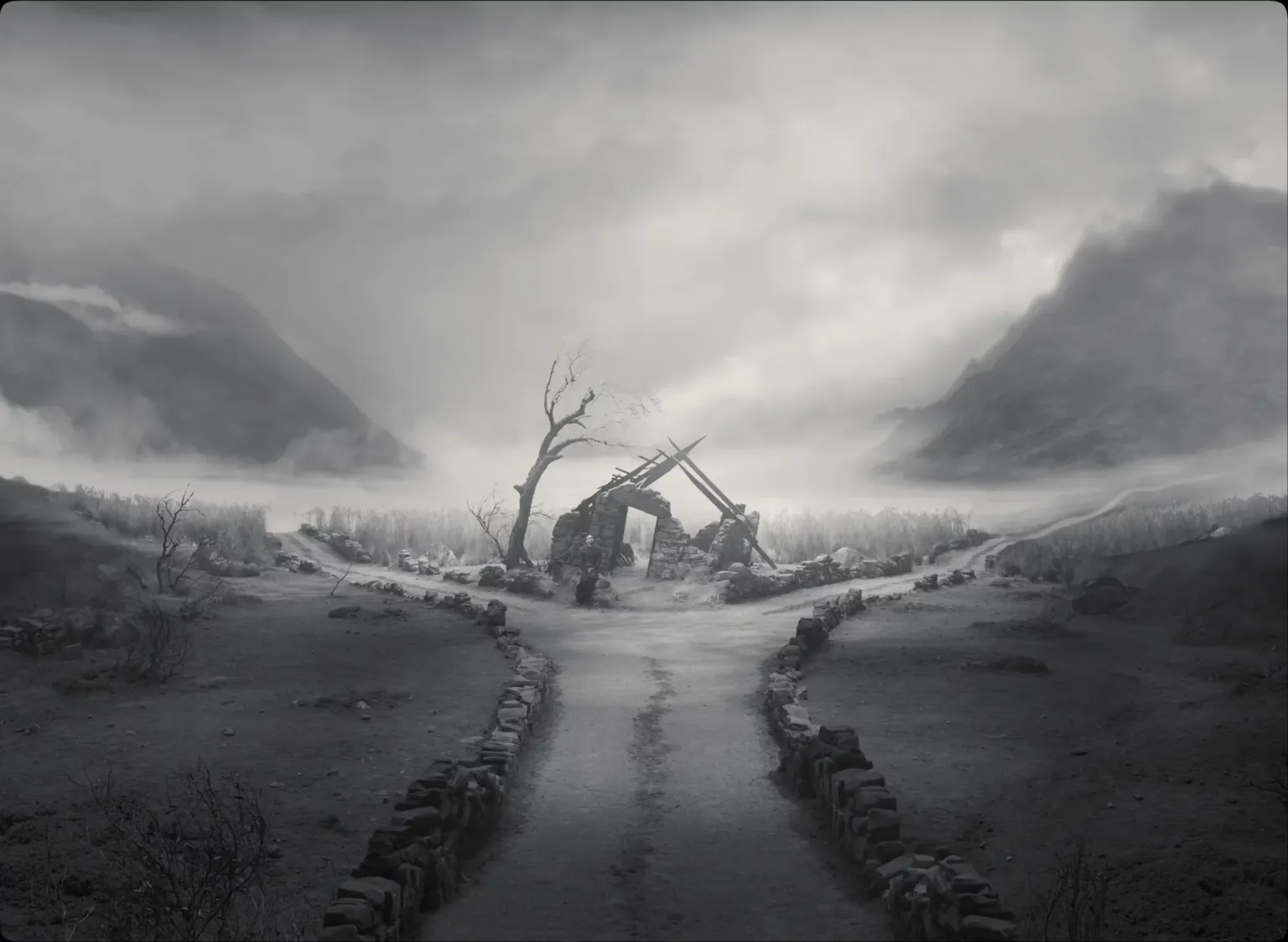 The compelling and minimalist visual design of the “Tragedy of Macbeth” 2021 by Joel Coen has inspired this world building practice in the Realtime-software, unreal engine 04. A very intriguing shot of this film is referenced for remaking the scene in this work.